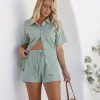 Effortless style meets everyday comfort in this stylish ribbed Como Set. Featuring a short-sleeve button-up shirt with a relaxed fit and drawstring shorts to match, this lightweight outfit is your go-to for warm days and laid-back outings. The soft ribbed texture adds subtle dimension, while the sage green hue brings a fresh, earthy vibe to your wardrobe.