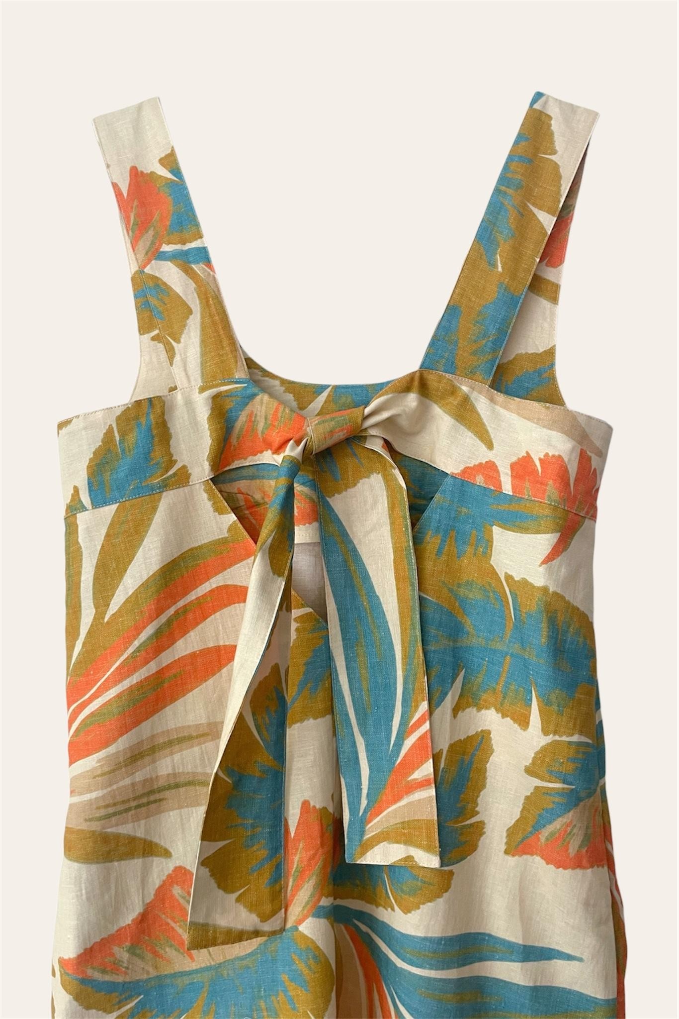 Introducing the Little Lies Aurora Collection: a blend of breezy style and everyday ease. Tailored from lightweight 100% linen, the pieces deliver comfort that lasts all day. The vibrant leaf print in coral, blue, and golden tones brings a refreshing, vacation-ready feel to any outfit.