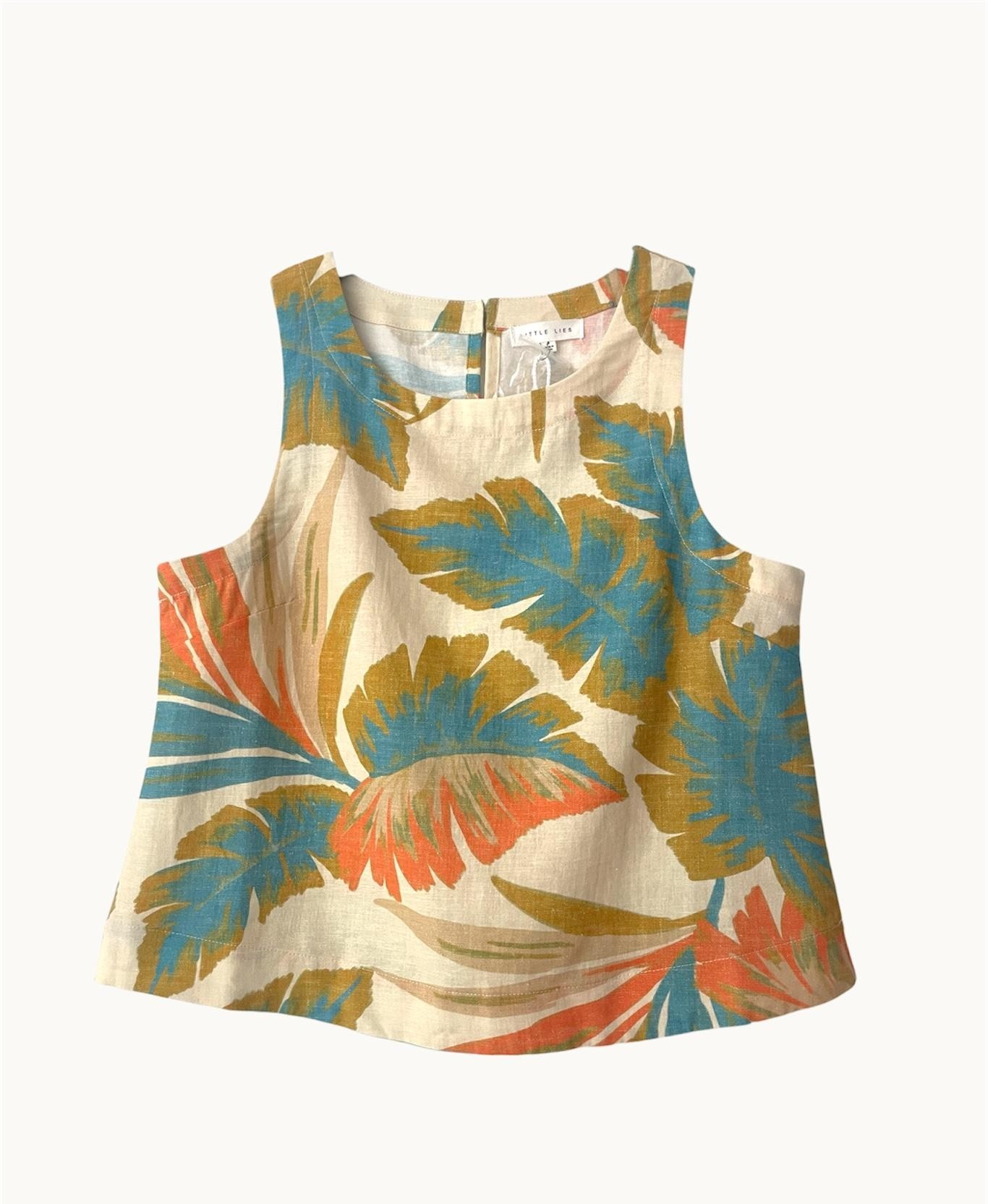 Introducing the Little Lies Aurora Collection: a blend of breezy style and everyday ease. Tailored from lightweight 100% linen, the pieces deliver comfort that lasts all day. The vibrant leaf print in coral, blue, and golden tones brings a refreshing, vacation-ready feel to any outfit.
