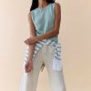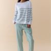 The Bobbie Top is a clean, elevated essential made from breathable, midweight 100% cotton. Designed with side splits for ease of movement and straight-cut edges for a refined finish, it features a bold placement stripe that adds a modern, directional touch. Perfectly matched with our new Luxe Linen Pants in Duck Egg.