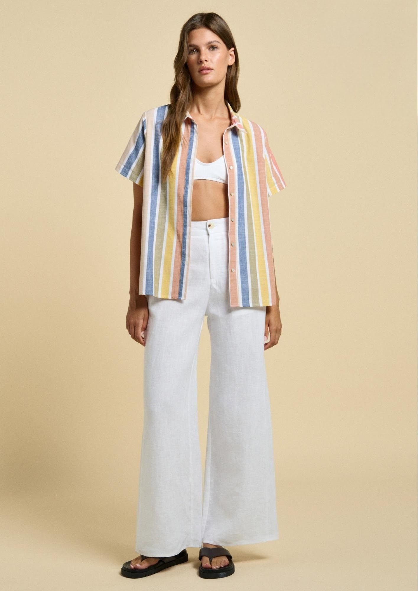 Introducing the Little Lies Della Pants in a fresh, crisp white crafted from 100% Linen. These pants offer a refined, simplified take on our signature Jude Pants (minus the topstitching around the pockets) – an easy silhouette elevated by a considered pop of colour, such as our Sofie Stripe Shirt. Features:-