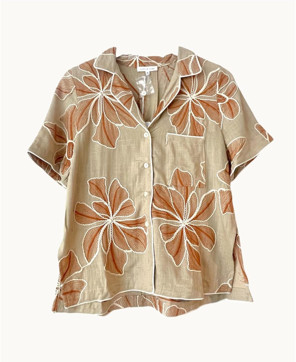 Little Lies Floral Embroidery Shirt – Beige