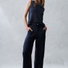 With the plain front placket, covered zip and contrast button has a smart casual vibe. The back is elasticised, so comfortable on. Also features a wide leg, deep front pockets and 2 pockets on the backside.