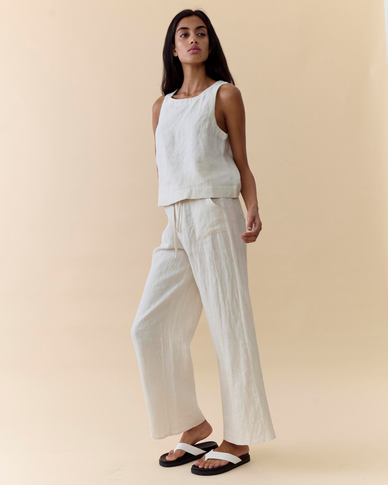 Simple yet Elegant….The Little Lies Jude Linen Top will take your Jude or Remy Pants to the next level. In 100% linen, the tank has a relaxed fit and is bra friendly. This light and breezy top will fast become your wardrobe staple as you can mix and match with just about anything! Pair with any colour of our Jude/Remy Pants for the ultimate no-fuss outfit. Featured here with the Remy Pants in Magnolia.