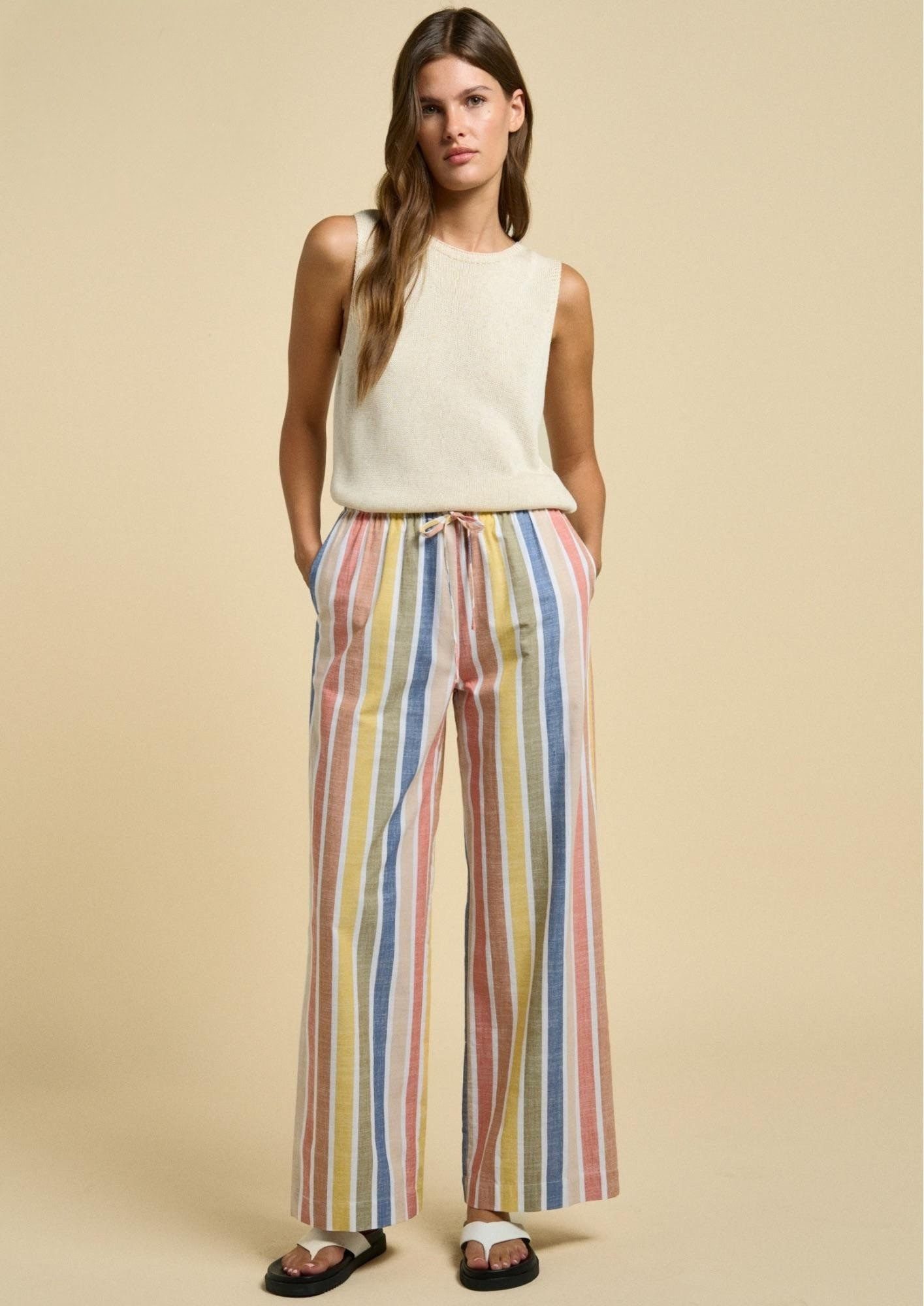 Brighten up your everyday look with these effortlessly cool Sofie striped pants. Designed in a relaxed, wide-leg silhouette, they feature side pockets, an elasticised waistband with drawstring tie for all-day comfort and the perfect fit. The soft, 100% Cotton lightweight fabric drapes beautifully, while the pastel stripes in yellow, blue, pink and white bring a fun, fresh pop of colour to your wardrobe. Style them with a simple tank such as our Natural Spring Tank or a White Rhodes for laid-back weekends, coastal escapes or easy summer days.