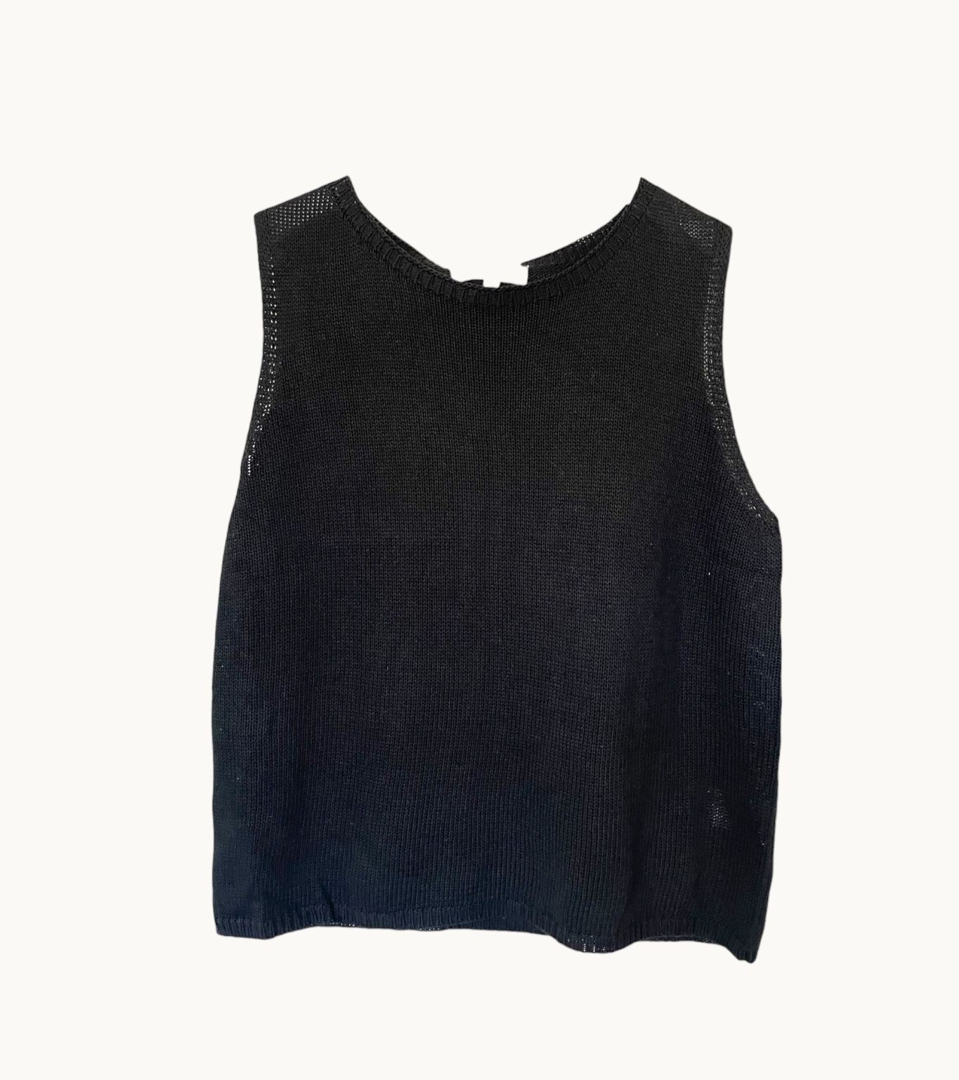 In a fabulous lightweight yarn, it has a beautiful tight but open weave detail, clean perfect fit which is so suitable for layering or to wear as is. Simplicity at it’s best!!