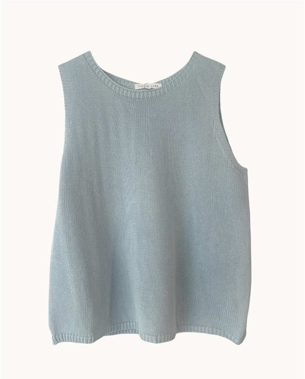 In a fabulous dusty blue lightweight yarn, the Little Lies Spring Tank has a beautiful tight but open weave detail, clean perfect fit which is so suitable for layering or to wear as is. Simplicity at it’s best!!