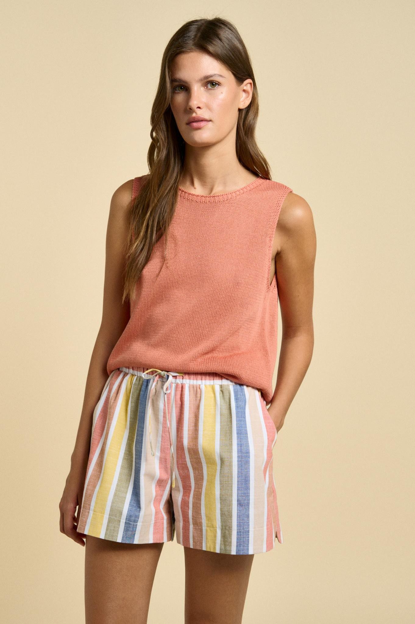 The Little Lies Spring Tank in a beautiful coral hue is the piece that you will style back with absolutely everything and anything. This spring tank is designed to carry you through the season with ease. Stunningly featured here with our Sofie Shorts.