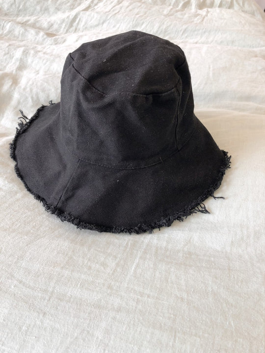 Salty Shadows Canvas Hat Frayed Edge – Black