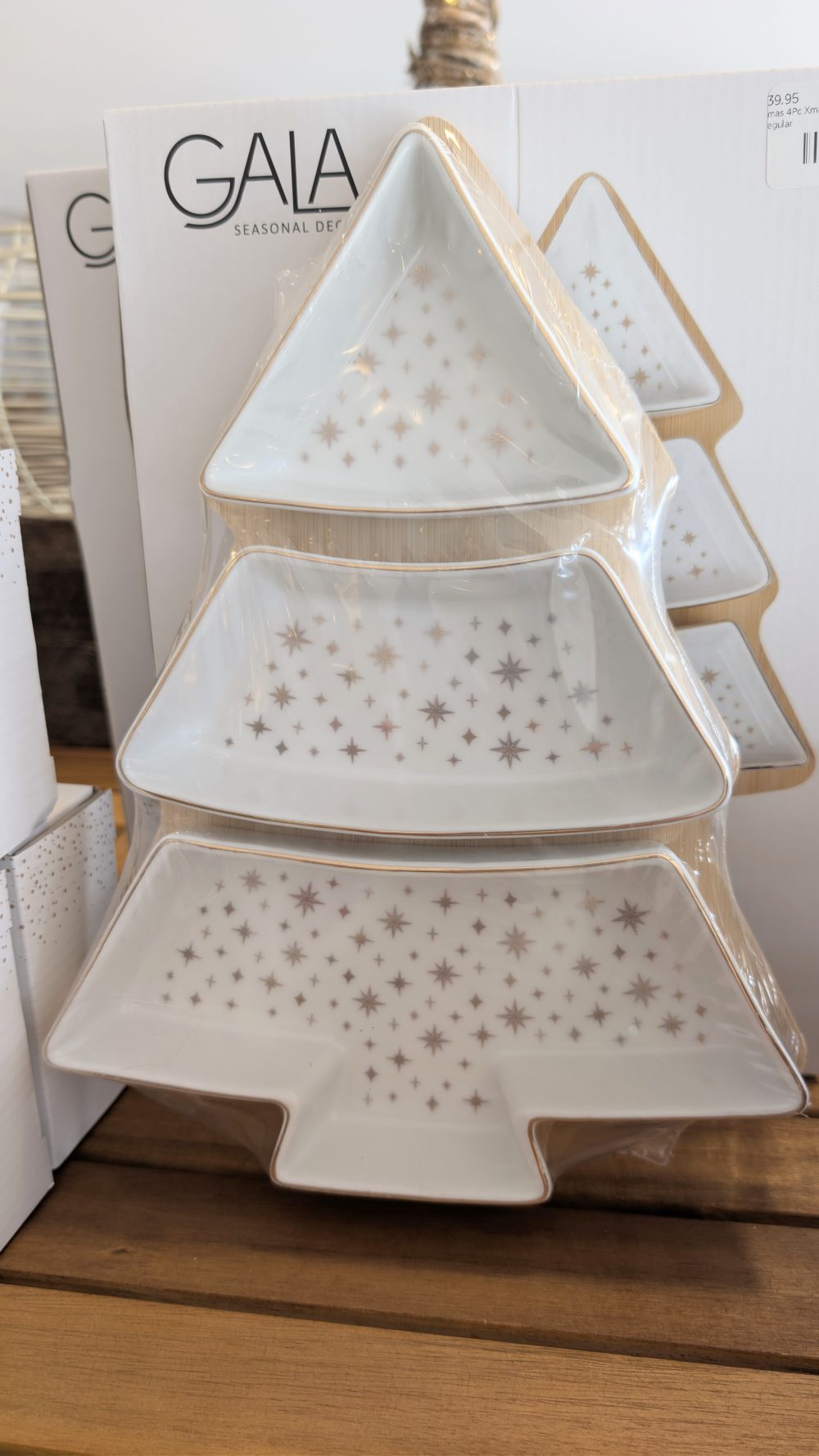 Serve in style this festive season with our elegant 4-Piece Christmas Dish Set. Featuring three white ceramic dishes adorned with a delicate gold star pattern and a natural bamboo tray, this set is perfect for serving dips, nuts, or sweet treats. A beautiful blend of modern simplicity and holiday charm, it’s ideal for entertaining or gifting this Christmas.