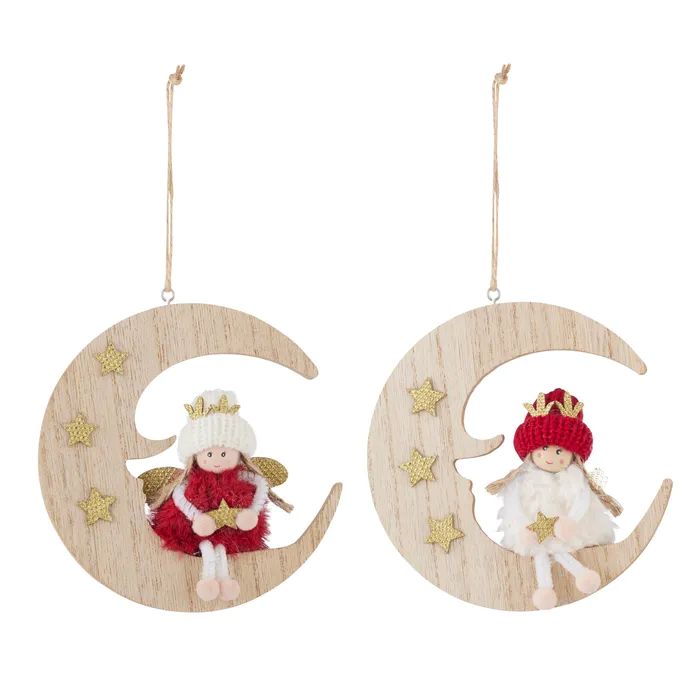 Add a warm, festive touch to your home with this charming crescent moon ornament. Featuring a delicate angel holding a golden star, it casts a cosy glow wherever it hangs – on your tree, garlands, door knobs, or walls.