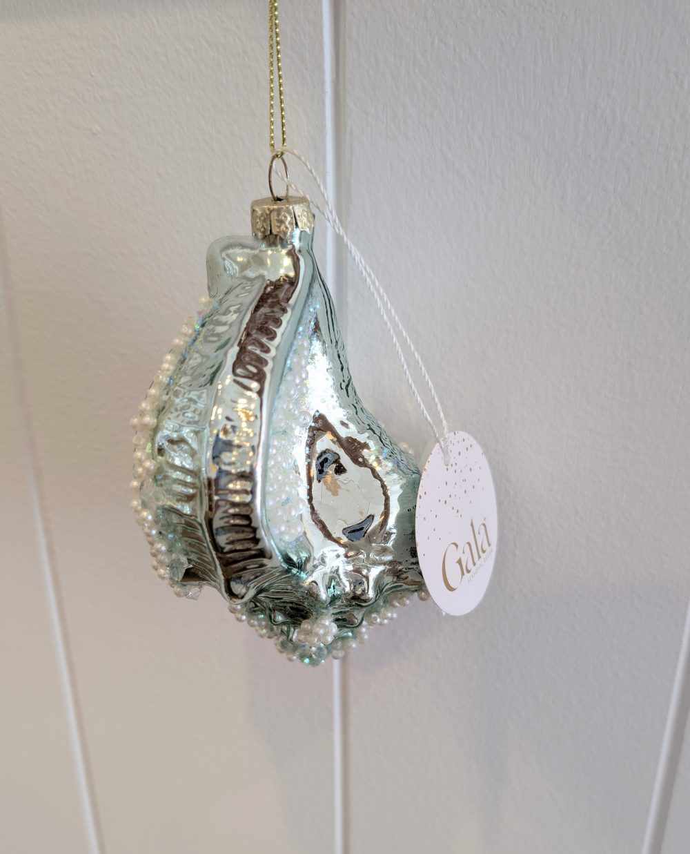 Add a refined touch to your holiday décor with this beautifully crafted glass ornament. Designed in a delicate shell-inspired shape with a soft blue and silver finish, it features beaded edge detailing for extra texture and charm. Perfect for hanging on trees, wreaths, or seasonal arrangements, this elegant ornament brings a sense of quiet beauty to any festive space.